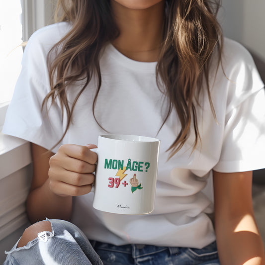 Mug anniversaire 40 ans - Femme - Mon âge ? 39 +