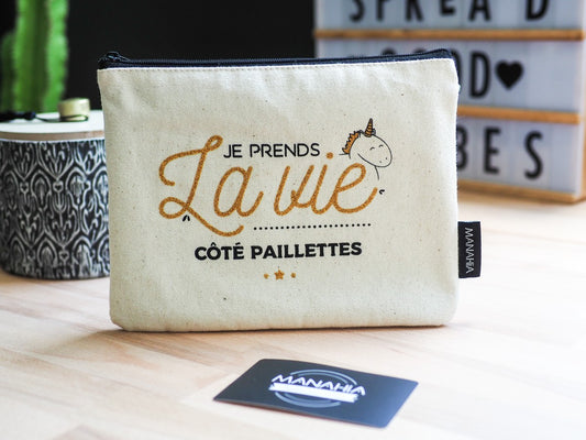 Pochette licorne Je prends la vie côté paillettes