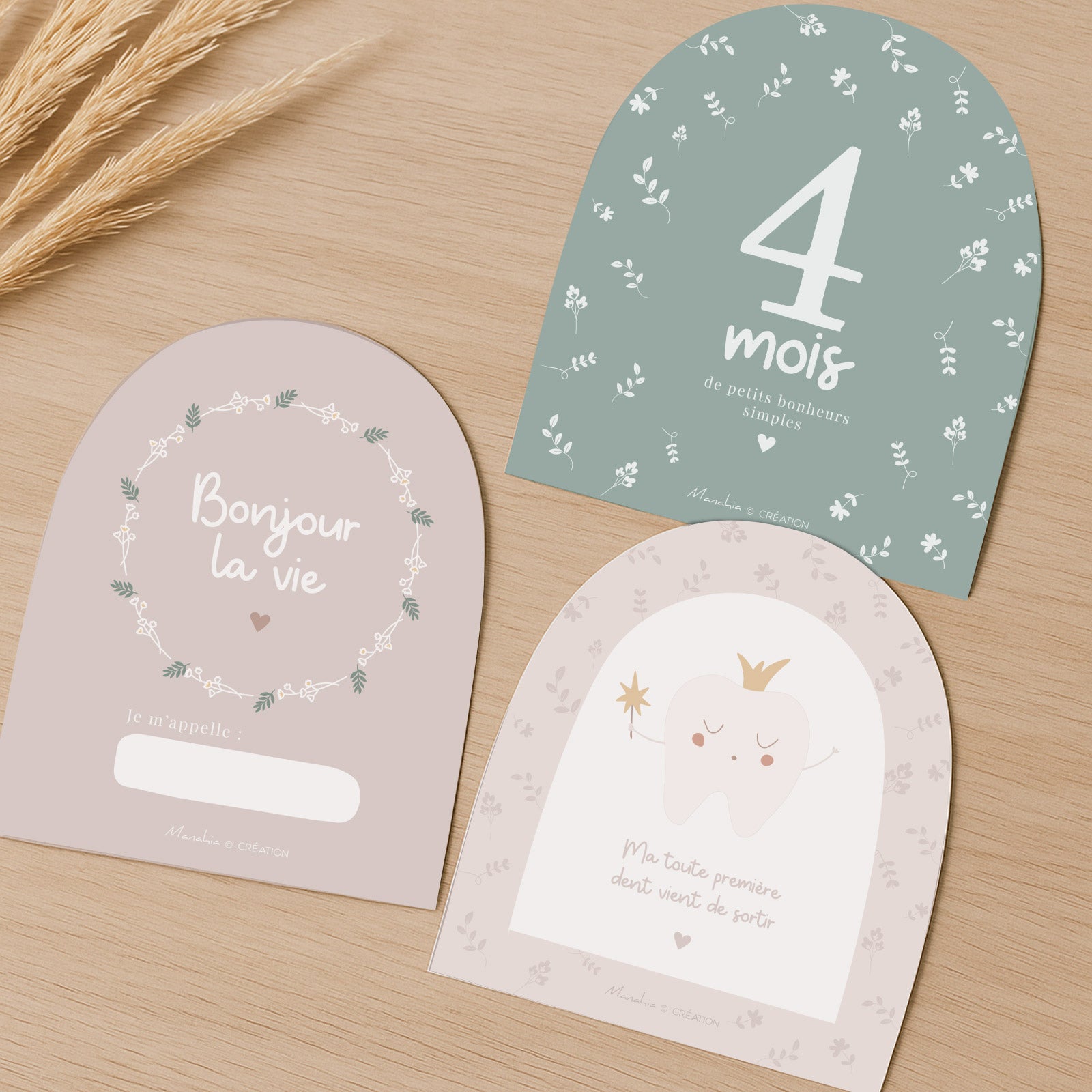 - 8 cartes “premières fois” (premier sourire, premier repas, première dent, premiers pas…)
